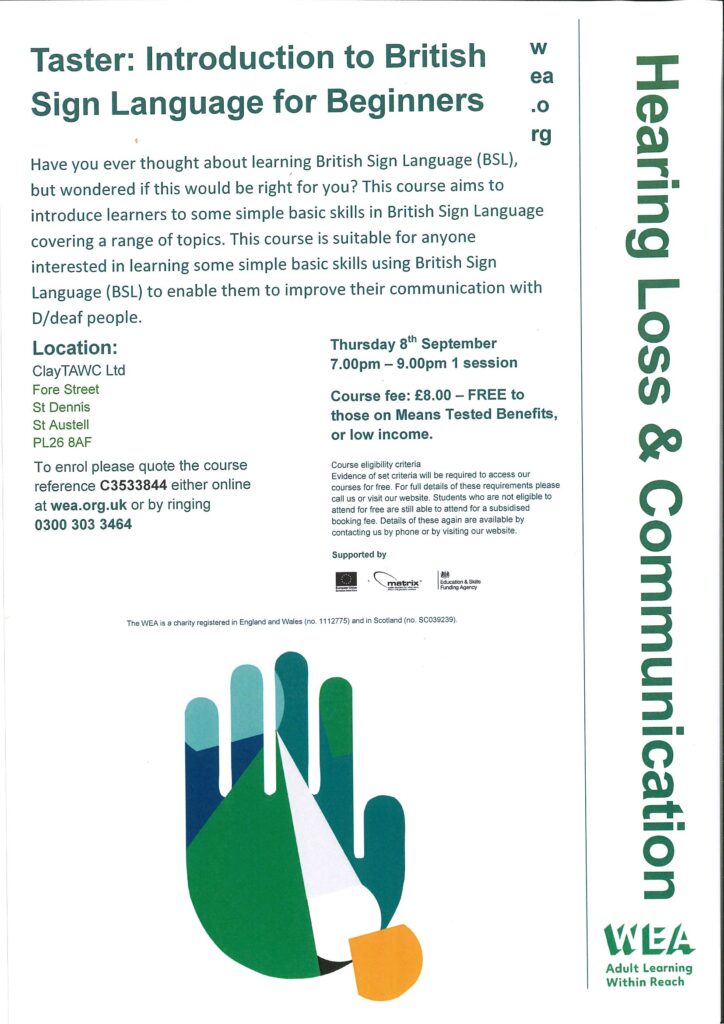 If you would like to learn basic British Sign Language skills to improve your communication with people who are deaf or hard of hearing, book onto this new Introduction Course hosted by WEA.